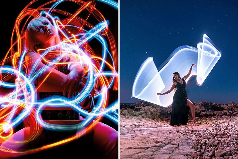 Несколько лет назад вирусными стали фотосессии с гибкими светодиодными фонариками со множеством диодов.