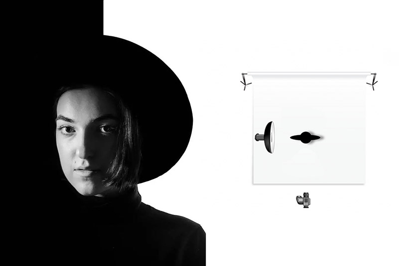 Эта схема света хорошо подходит для драматичного портрета в низком ключе. Разделяющий свет — приём, при котором одна половина лица освещена, а вторая уходит в тень. В результате визуально лицо оказывается чётко разделённым на две части.