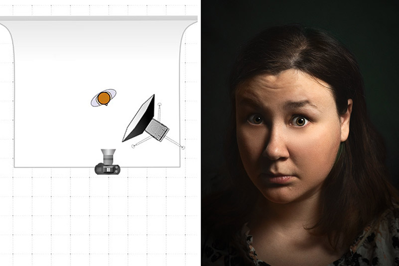 «Рембрандт» — свет несложный, но капризный и достаточно требовательный к нюансам. Универсальная схема работает не всегда идеально, поскольку анатомия лица у всех разная: форма носа, глубина посадки глаз, скулы.
