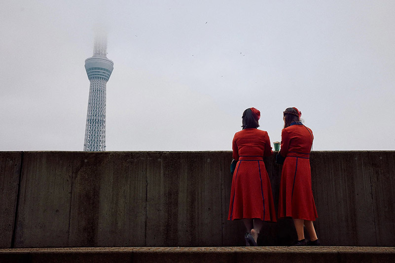 Великолепный контраст: туманное небо и две девушки в красной одежде / Фото: koby.photography