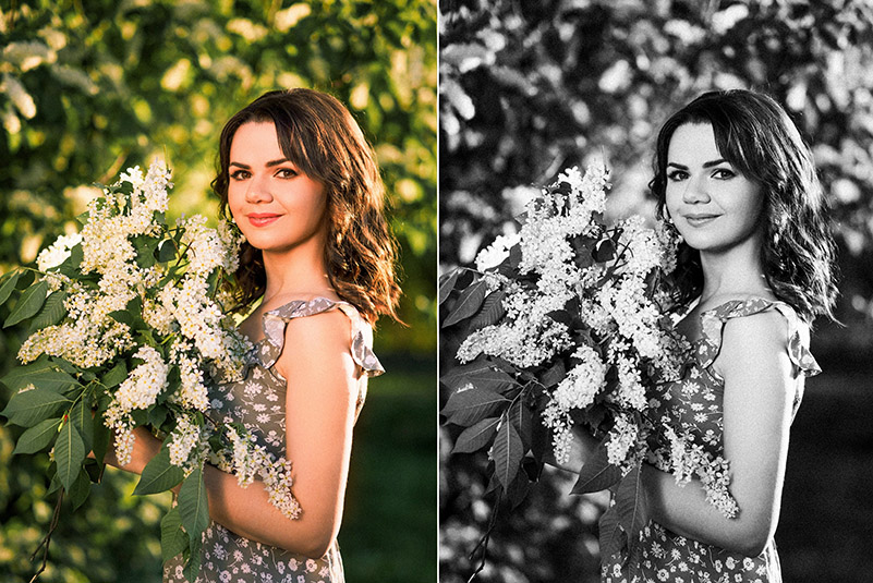 Стилизация под насыщенный и контрастный Kodak Ektar 100 и классический зернистый чёрно-белый Ilford HP5 / Иллюстрация: Алиса Смирнова